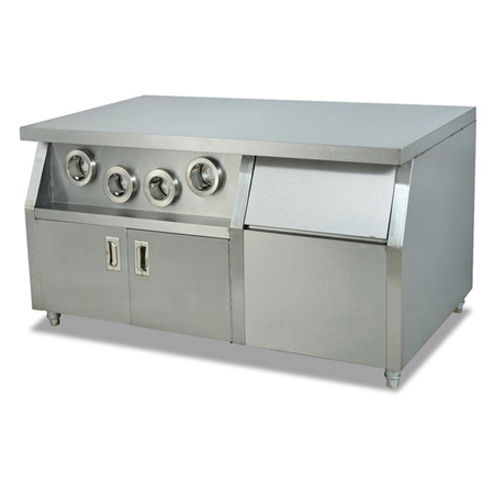 四孔分杯器中心岛特性:不锈钢结构,自动弹杯装置,冰桶保温装置。WS-02带四个分杯器功能,带储冰桶。